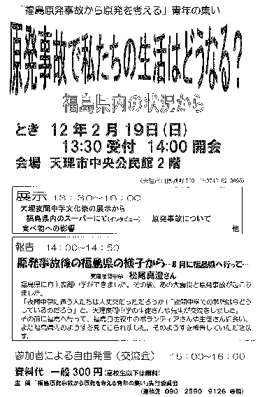 環境省 http://www.env.go.jp/press/press.php?serial=14598 指定されれば“DANGER被曝地域”であることを認める事になるので、指定を拒否している地域もあるのだとか。また、ホットスポットがあっても、市町村ごとに一定面積が無ければ指定されない。 エリア図を見れば栃木と群馬も大半。当社の顧客も判っているだけで2名避難された千葉県北部も入っている。調査していないだけだろうけど東京は入っていない。 数日前から年賀状を作っている。 かの有名な浪江町、富岡町宛てもある。 今、どうされているのだろう? 今年は会社用、個人用に加え、被災地用を作った。 福島以外でも東北全域でも、いや日本として、“年賀”じゃないよな。 この間聞いた話では、当社の顧客でもある常滑の方が、小さい子供の為にバリ島まで避難されたのだとか。 科学的知識は限られた範囲、でも解釈のし様で個々の見解が異なり、受けるストレスも異なる。 冒頭の文章を読んていたらバカバカしくなって、年末年始に参加できるデモでもないかと探していたらこんなものが検索に掛かった。 http://www5d.biglobe.ne.jp/~jf-iwai/syougatudemo.htm 上関原発 山口県瀬戸内海側の原発反対デモ。2002年の報告。 まだ継続されているなら家族総出でここへ行こうか? 年末年始の「反原発」イベント情報があれば教えてください。 片道500kmくらいなら行きます。 |