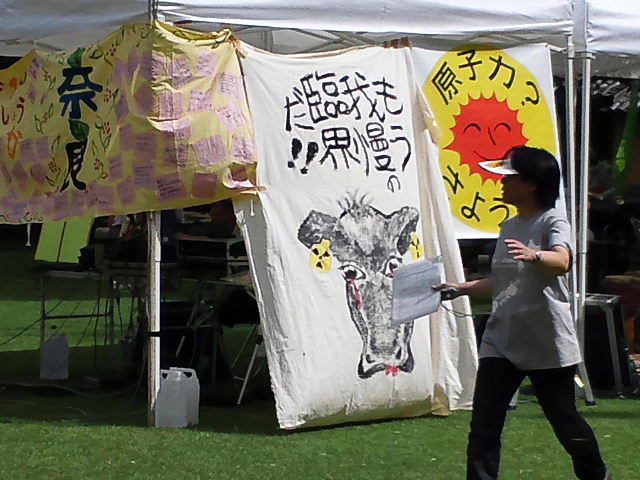震災から6カ月目で、奈良でもパレードと集会が行われた。 主催はnara-action。 全体的に政治色は強くなく、主婦が多く乳児を抱えたママも多かった。 集会の後半、福島市から避難してきた女性が舞台に立ち、思いを述べた。 地震だけなら私はここに居ない。 私がどれほど放射能を浴びたのか、お腹の子供がどれほど放射能を浴びたのかわからない事が怖い。 そう言葉を詰まらせながら、感情を抑えようにも抑えきれない様に、私も胸が熱くなる。 目に見えないものに侵される恐怖。 実際、学者ですらどういう状況でどれほどの影響が出るのかはわからない。 JR奈良駅前で“がんばれ東北”と福島の特産品を、行政なのか市民団体かが売っていた。 今やフクシマ産も近隣県産も誰も買わない。 いや、買ってはいけないのだ。 すべては被害として東電が補償するべき。 今はまだ加工品やハウス栽培などは大した放射能も無いだろうが、土壌が汚染され、地下水に達し、これから大きくなる可能性は大いにある。 現地の方には悪いが、復興と称しても観点を間違えてやいないか?と思う。 死の街と言った大臣は、素直な感想を述べただけだろう。 誰しも生活の為に受け入れざるを得ない事が有るが、正しい知識を持ち、子供の世代も含めて明確な優先順位の下に行動してほしい。 今回の主催者nara-actionでも奈良県内の避難先住居は案内してくれる。 http://nara-action.blogspot.com/ |