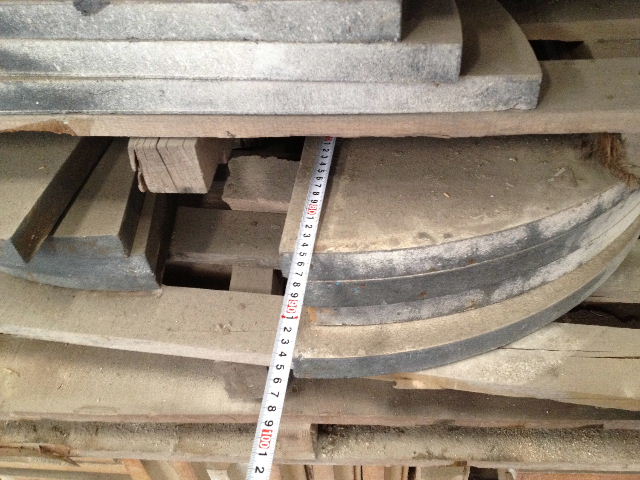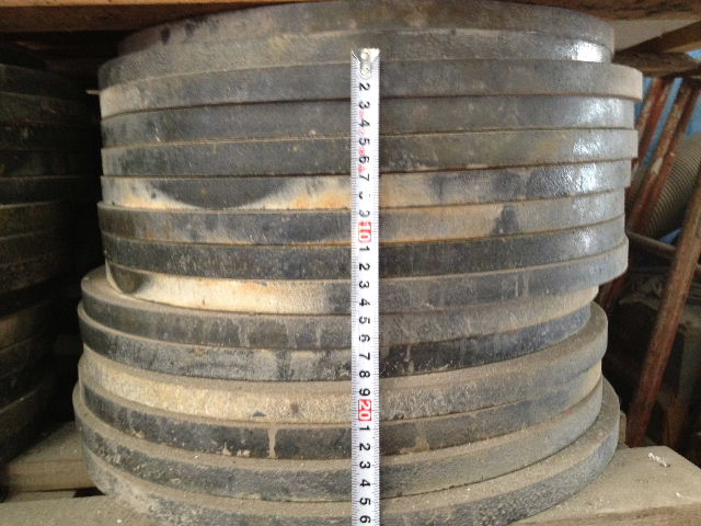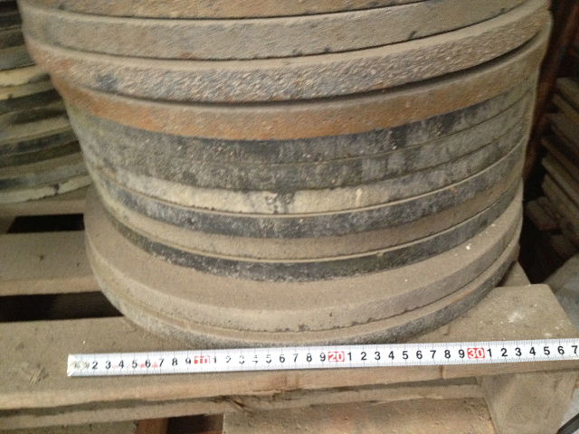 350φ厚み20mm~850φ厚み40mm(2分割) 価格は3000~5000円と聞いていますが、希望額も添えていただければ折衝してきます。 |