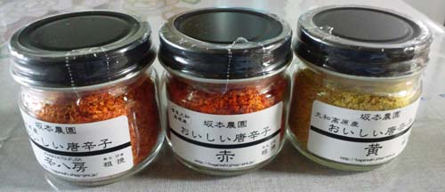 同じ奈良県で綱引きをしている仲間が唐辛子の粉を作った。